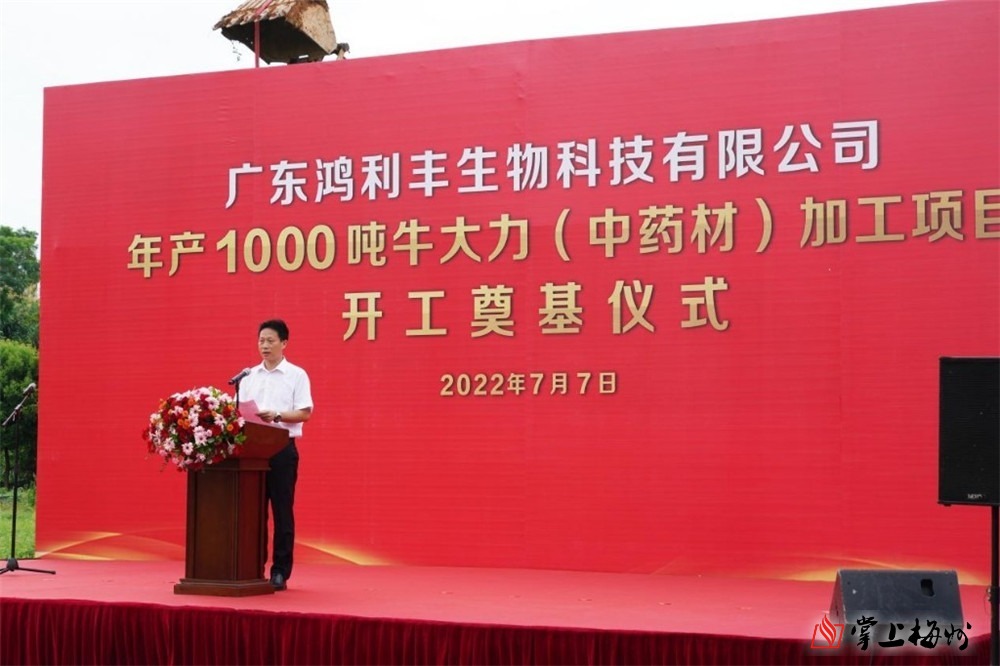 日前,廣東鴻利豐生物科技有限公司年產(chǎn)1000噸牛大力(中藥材)加工項目開工活動在興寧市鴻利豐生態(tài)產(chǎn)業(yè)園舉行。
